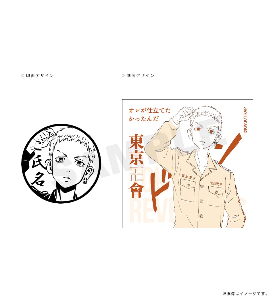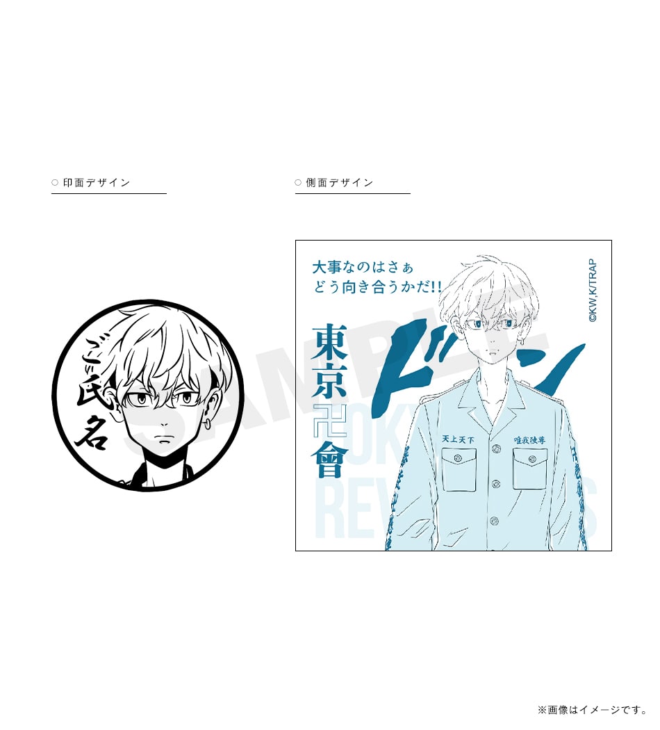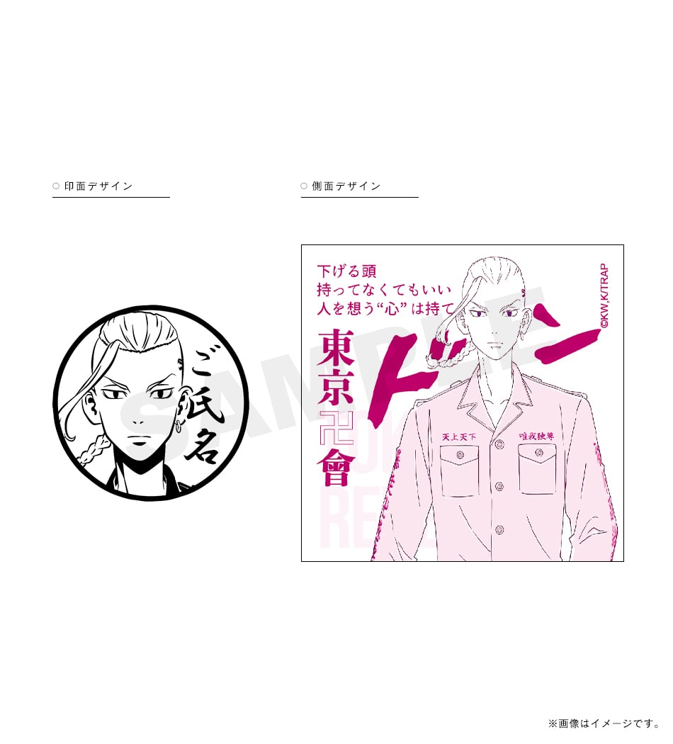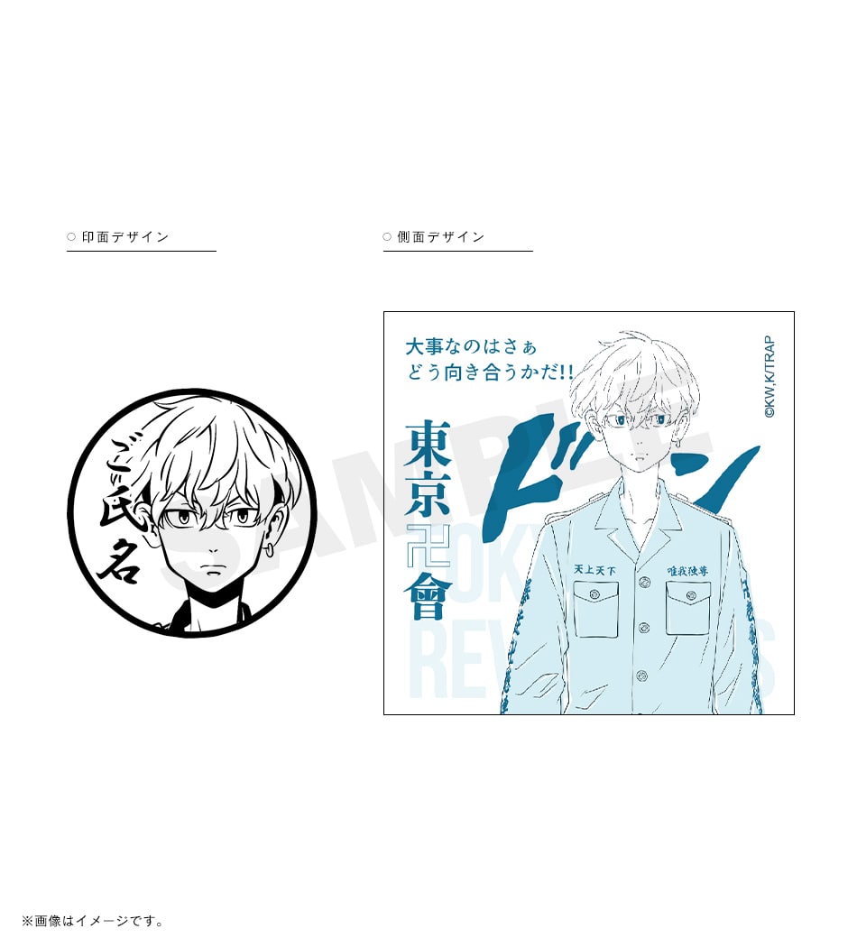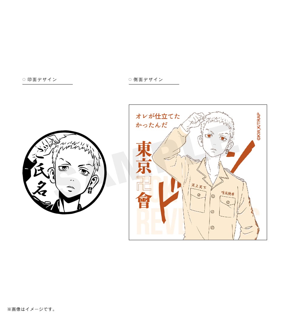 三ツ谷の「オマエの特攻服は絶ッ対ェオレが仕立てたかったんだ」という熱い言葉が刻まれた痛印。印面にはお好きな文字を彫刻でき、世界でたった一本の証に。