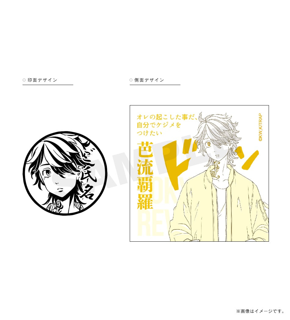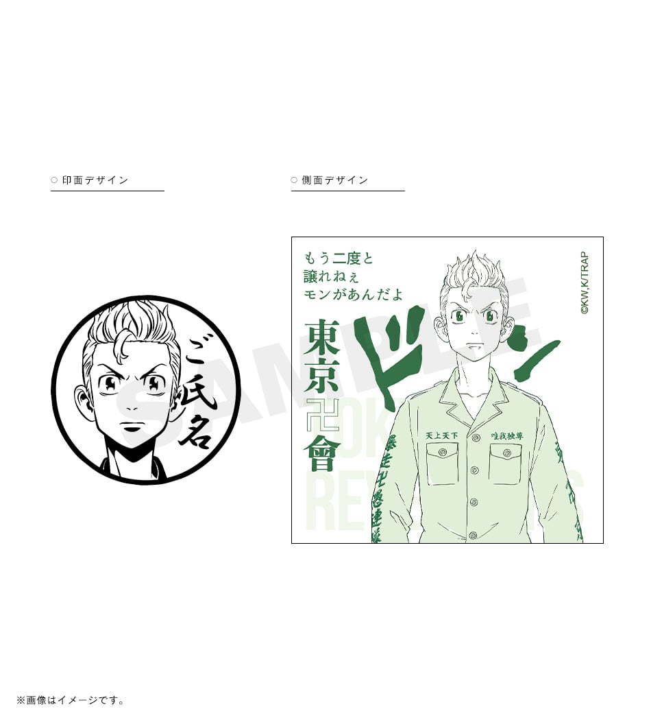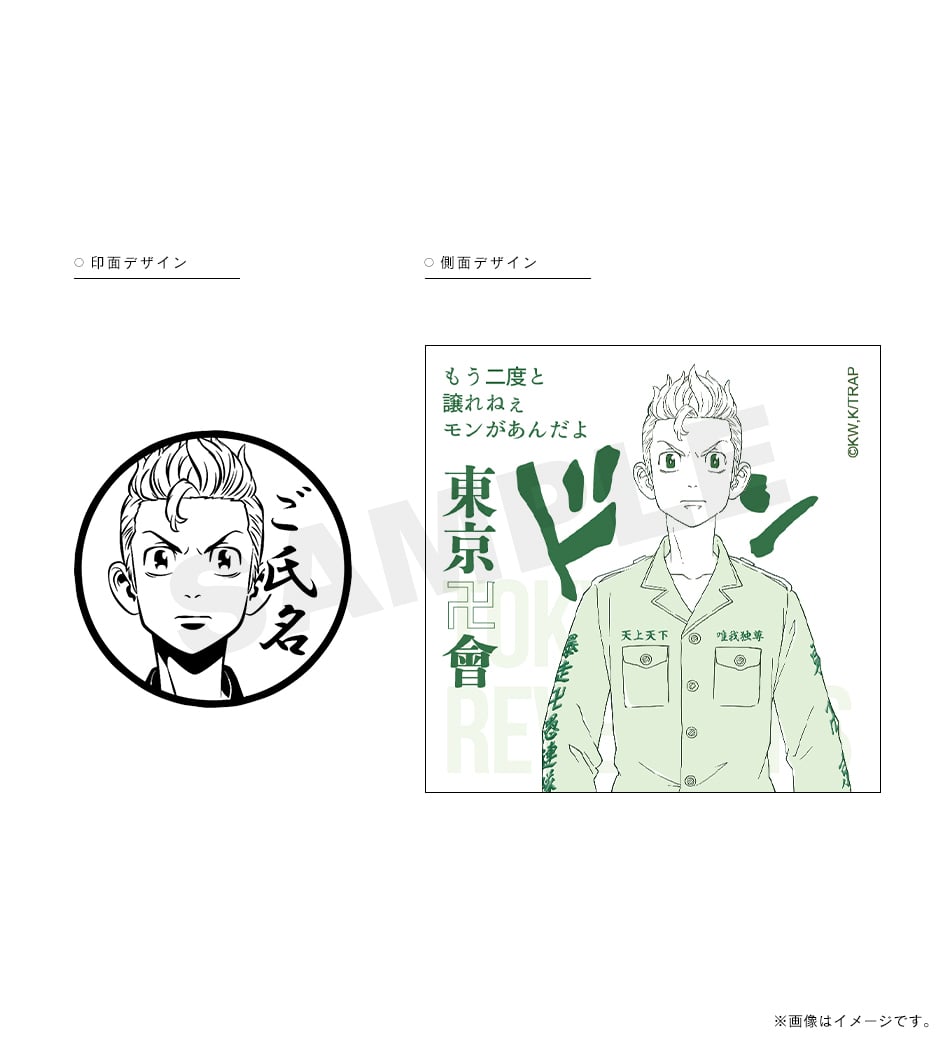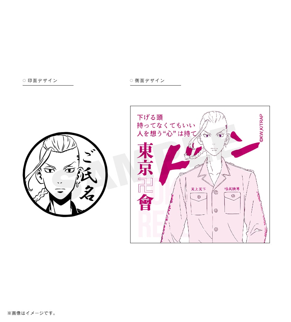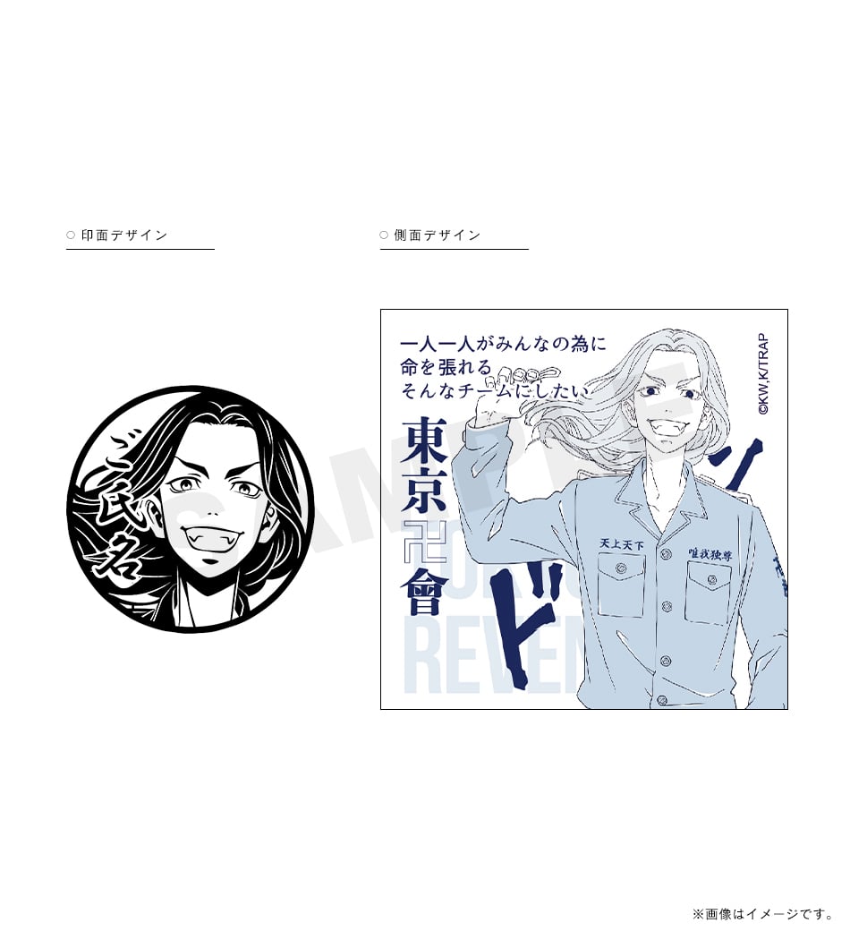 三ツ谷の「オマエの特攻服は絶ッ対ェオレが仕立てたかったんだ」という熱い言葉が刻まれた痛印。印面にはお好きな文字を彫刻でき、世界でたった一本の証に。