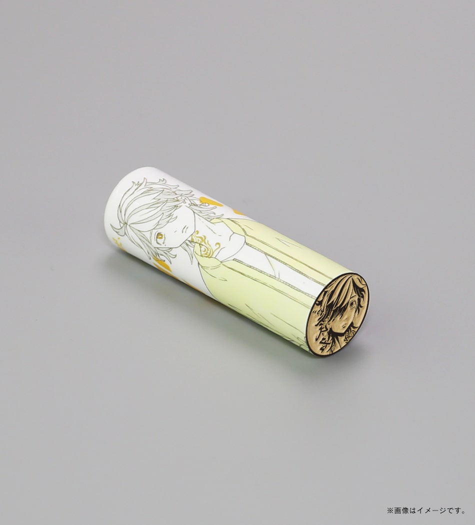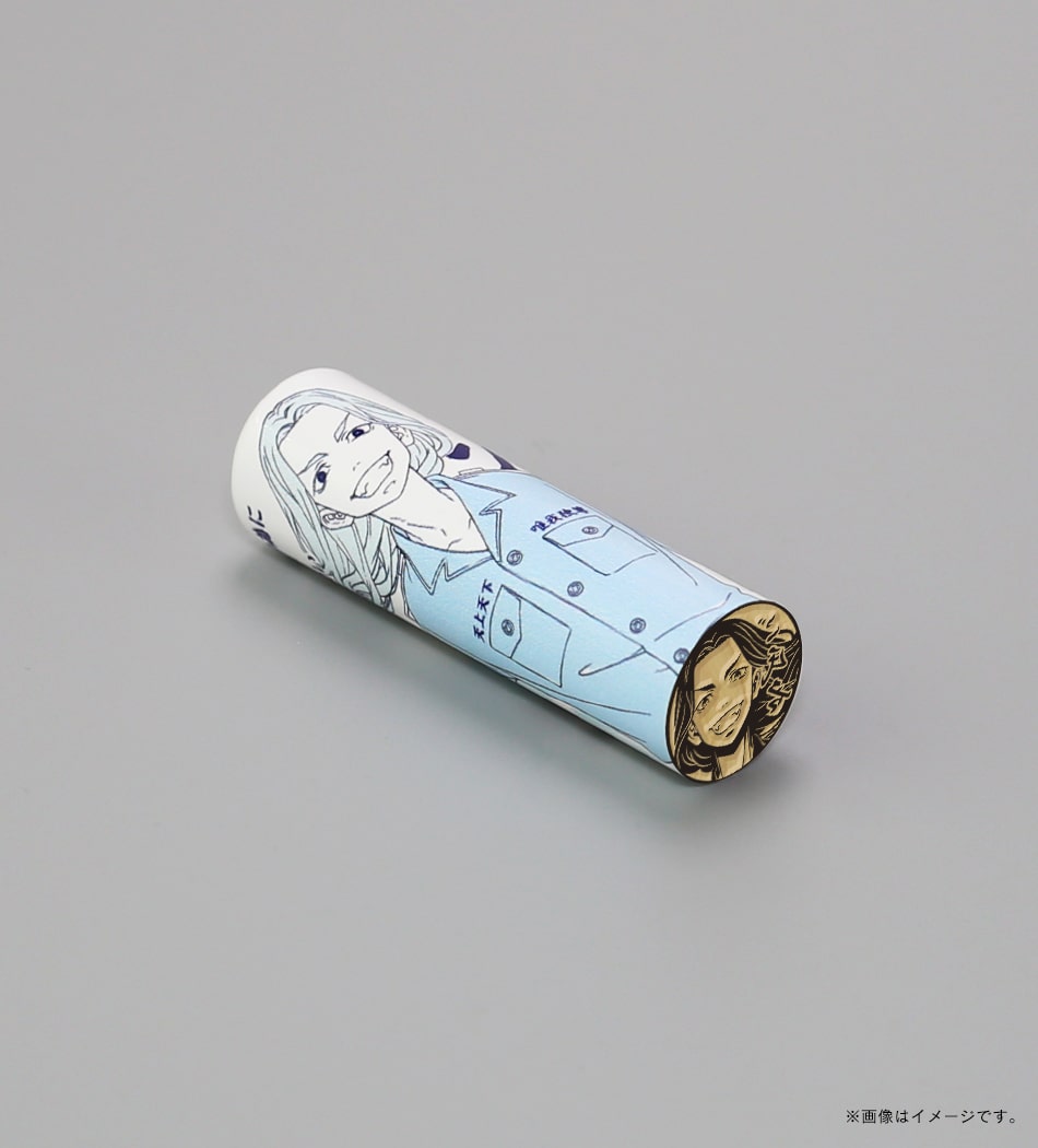 千冬の「大事なのはさぁ どう向き合うかだ!!」という熱い言葉が刻まれた痛印。印面にはお好きな文字を彫刻でき、世界でたった一本の証に。