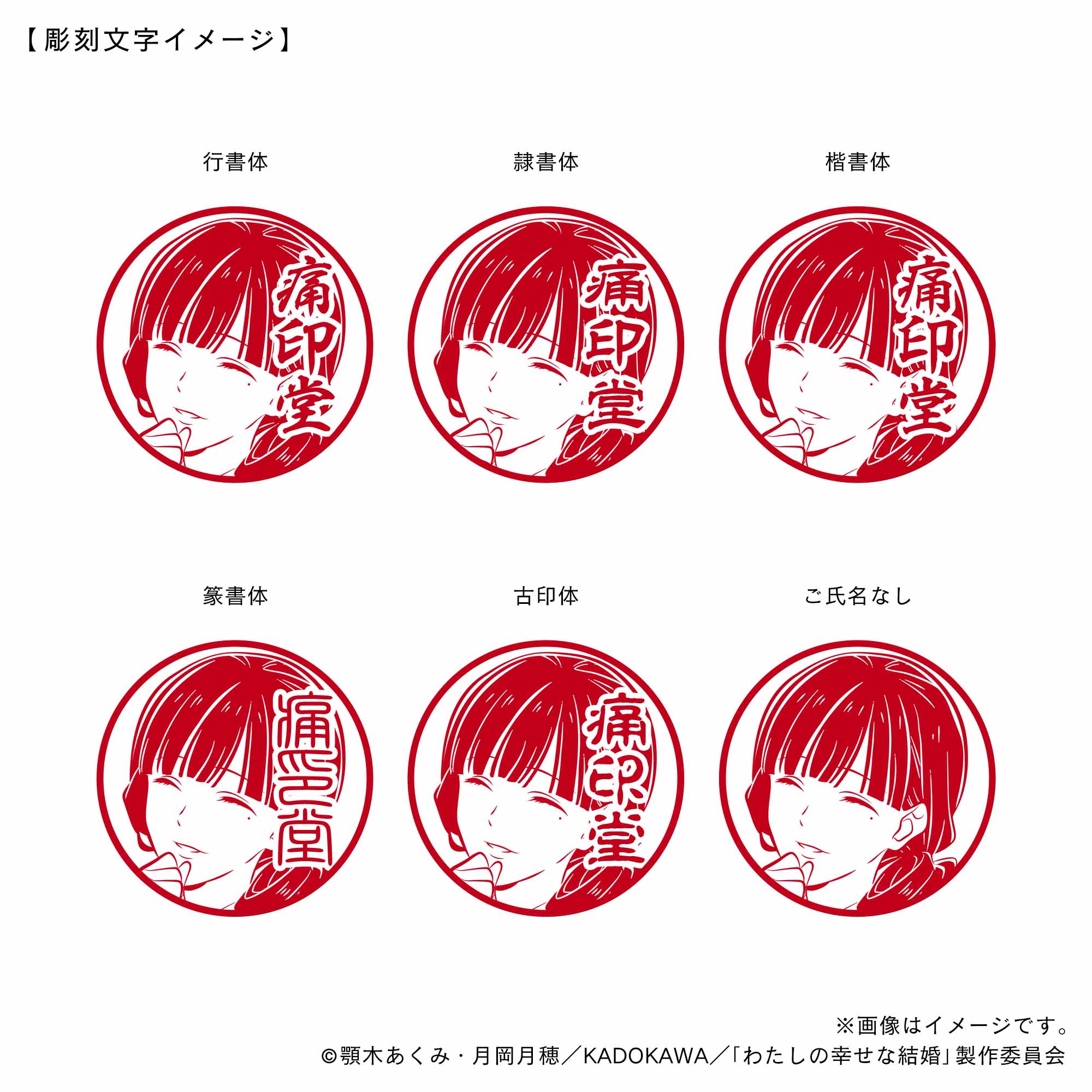 TVアニメ『わたしの幸せな結婚』より、斎森美世と久堂清霞それぞれのキャラクターを各2種ずつラインナップ。ディティールにこだわった表情や、一本一本細やかに表現された髪の毛などが、より一層二人の美しさを印影に表現!